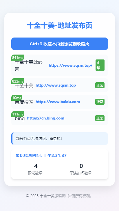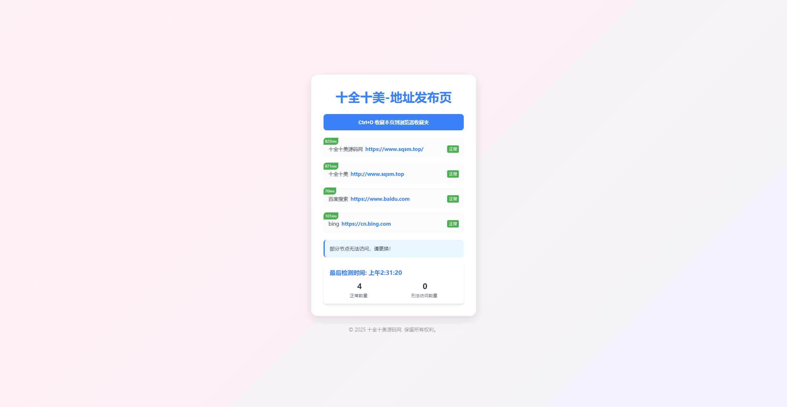 今天是不美好的一天,想抽两个小时出来直接去搬别人的文章来敷衍一下博客!没想到阿没想到,自己搭建了单页之后竟然是如此的难受!后面再说!今日搬【全新UI个人网址发布页带PING源码】!嘿嘿